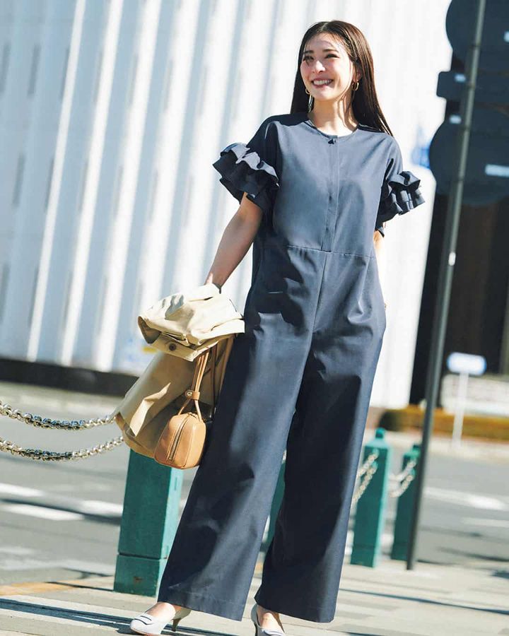 忙しすぎてコーデを考えたくない日は仕事にもママOFF時間にも映えるシャレ感のあるオールインワンがお守りに。