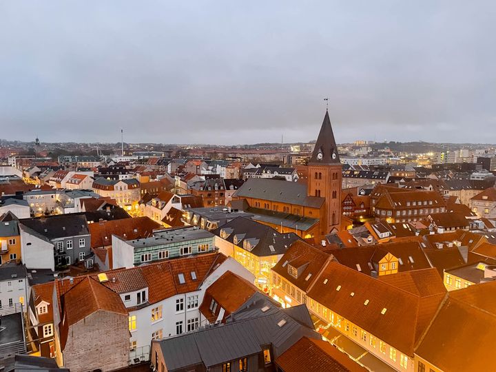 デンマーク第二の都市オーフスにて。冬はどんよりとした天気が続くが、光が灯った街並みはあたたかい印象に。