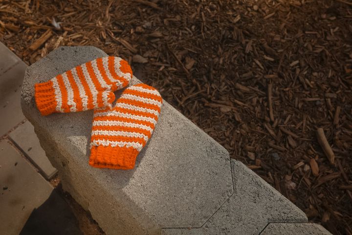 オレンジと白のボーダーがキュートなお気に入りのミトンの手袋Photo by Kana Okuyama