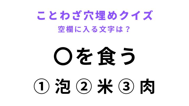 「〇を食う」の空欄に文字を入れると、あることわざが完成します。