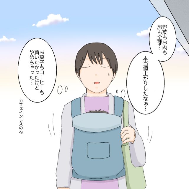 選び抜いて買い物を済ませた帰り道。野菜もお肉も玉子も全部、本当に値上がりしたなぁと、スーパーに並んでいた食材を思い返していました。本当はお菓子とカフェインレスコーヒーを買いたかったけれど、また諦めてしまいました。