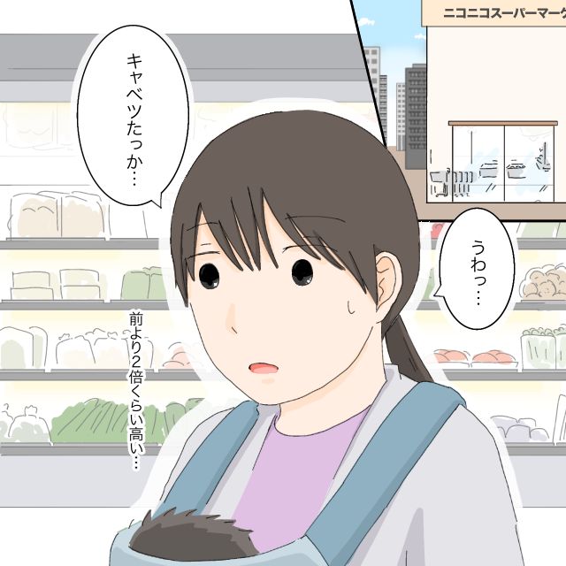 いつものスーパーへ買い物に行ったある日、キャベツの値段に驚きました。少しずつ値段が上がっているのはもちろん知っているけれど、前より2倍くらいの値段になってる。えー。高いな。どうしよう。