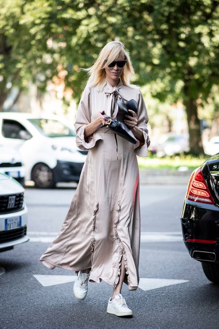ファッションの歴史を振り返っても、白スニーカーは数々の印象的なシーンを彩ってきた。中でも象徴的なのが、セリーヌ(CÉLINE)2011年秋冬コレクションのフィナーレの一幕だ。登場したフィービー・ファイロの足もとには、真っ白な「スタンスミス」。潔くミニマルなスタイルに映えるその一足は、白スニーカーがモードの舞台でも存在感を放つことを証明した。