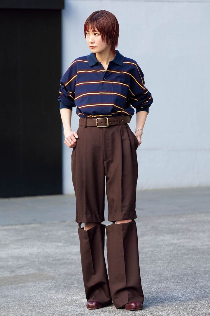 ラガーシャツ¥29,700、パンツ¥64,900、ベルト¥20,900(全てアンスクリア/アマン)、JW Andersonのシューズ、inoopのブレスレットは本人私物