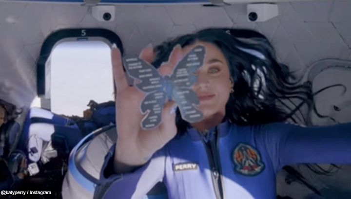 この“なんちゃって宇宙飛行”は、まさにケイティ・ペリーが4月14日に実際に行った宇宙プロモーションのパロディだ。ペリーはこの日、Blue Origin社のカプセルに乗り込み、わずか11分間の宇宙飛行を体験。その最中に、蝶の形をした紙に自身のツアー「Lifetimes Tour」のセットリストを記したものを披露したのだ。