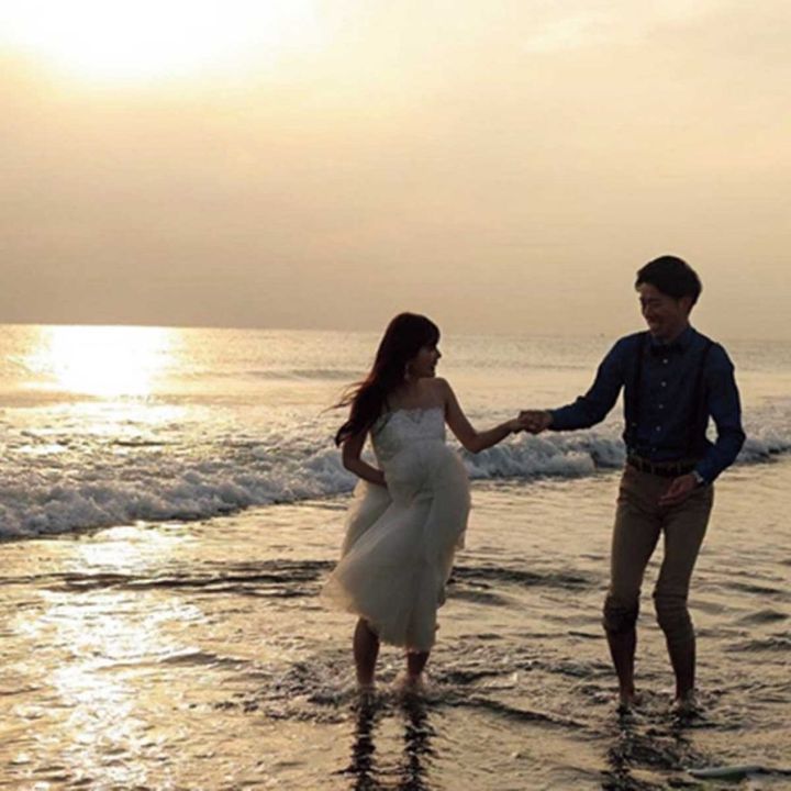 「海での撮影はありきたりにならないようにあえてサンセットタイムをセレクト。ワイワイ楽しく撮影していただきました」(宇川美有紀さん/30歳/メーカー勤務)