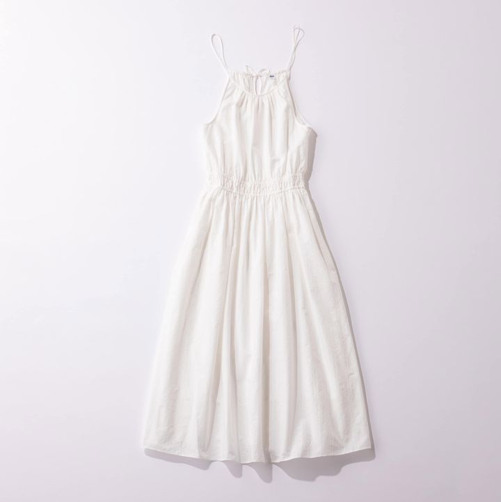 心地よくフィットするウエストギャザーとホルターネックの後ろがリボンで調整できるので、自分の体型に合った着こなしが可能。程よいボリューム感が可愛いく、一枚で着ても華やかに見えます。