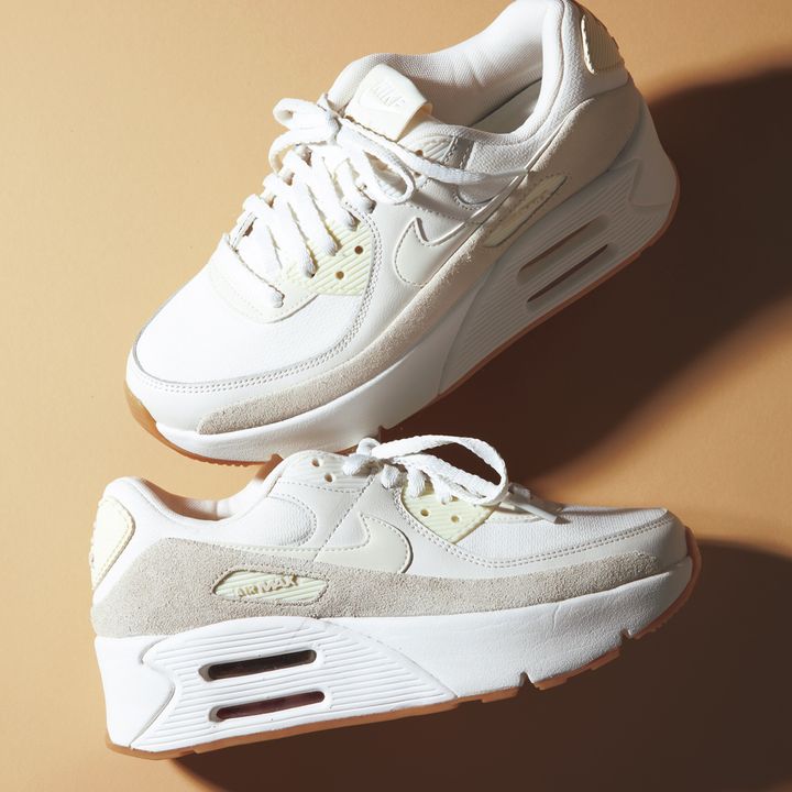 「エア マックス 90 LV8」は、定番シルエットを厚底にしたデザイン。レザーとスエードのレイヤードラインがキレイ。スニーカー[H5cm]¥16,830(ナイキ スポーツウェア/NIKE カスタマーサービス)