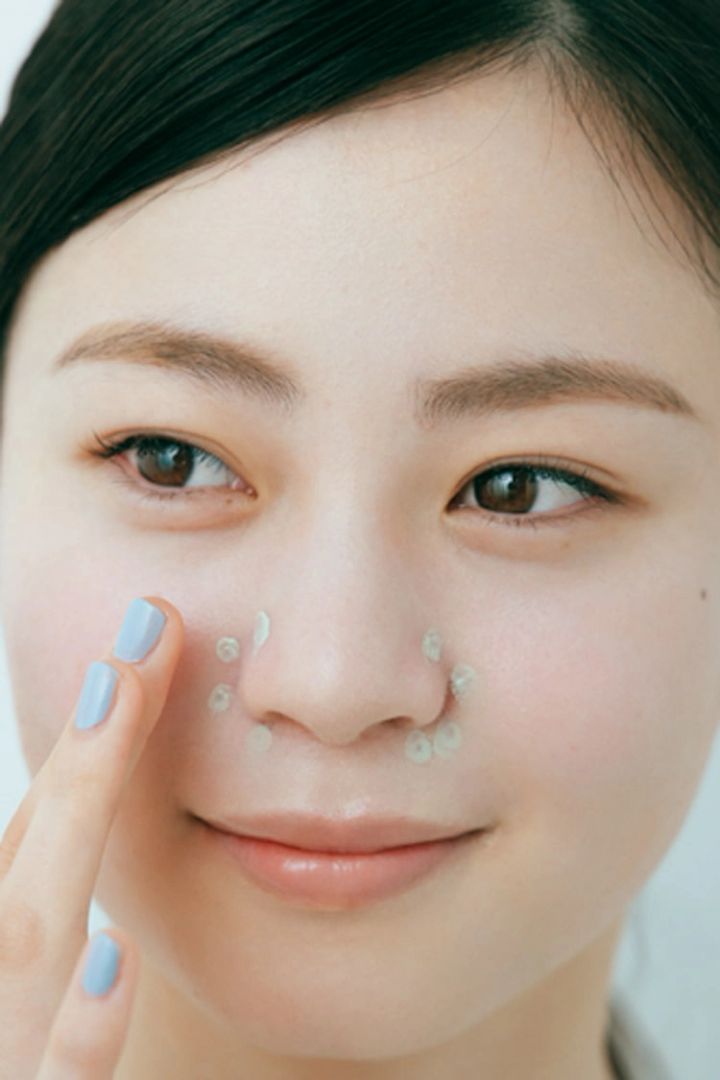 見落としがちな鼻まわりの赤みをグリーンでぼかすと、美肌レベルがぐんと上がって見えるので忘れずに。