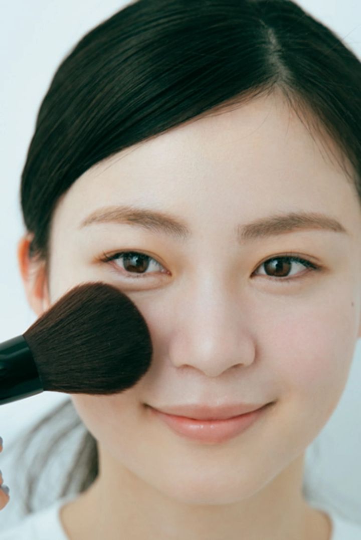お粉もブルー系にすると透明感が爆盛れ。パフではなく、大きめブラシにとってほわっと顔の中心だけにオン。