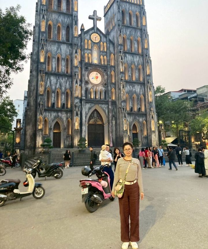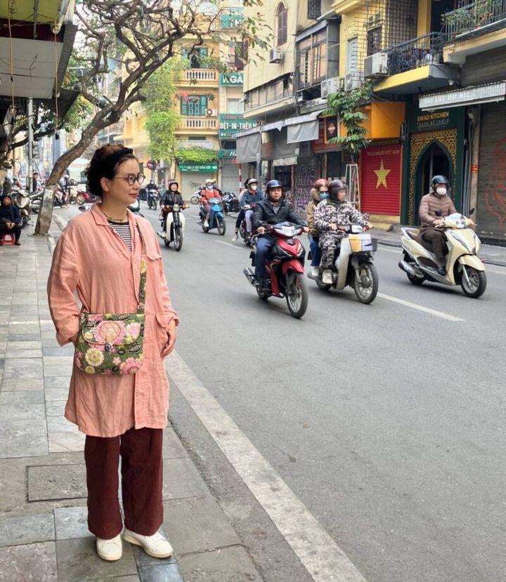 ベトナムの街歩きには基本スタイルとピンクのコートで陽気に