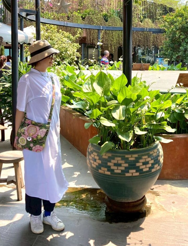 ハノイからタクシーで40分、バッチャン焼きで有名な陶芸の村、バッチャン村も訪れました。この日はショッピング中心の一日でしたので白のワンピースで気分を変えて。無印良品の「スタンドカラー半袖ワンピース」はオーガニックコットンの涼感ブレード地でゆるっと着心地よく(なんと偶然!たまたまベトナム製)同じく無印良品のテロンとした黒パンツと合わせたらベトナムの民族衣装アオザイの雰囲気になりこちらもごきげんなコーデとなりました。