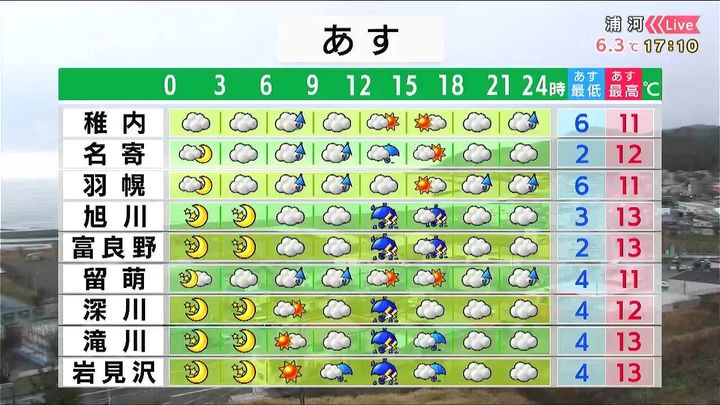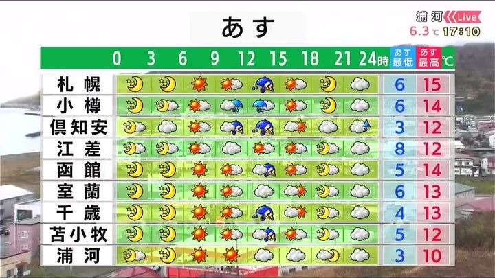 ・あすの札幌の朝昼晩の天気