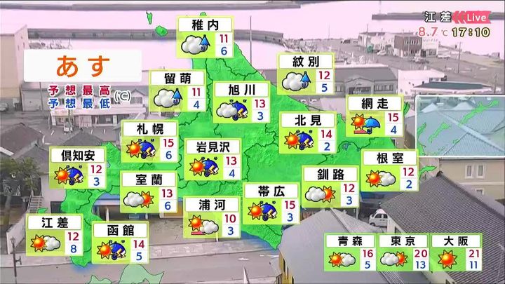 ・あすの北海道の天気と気温