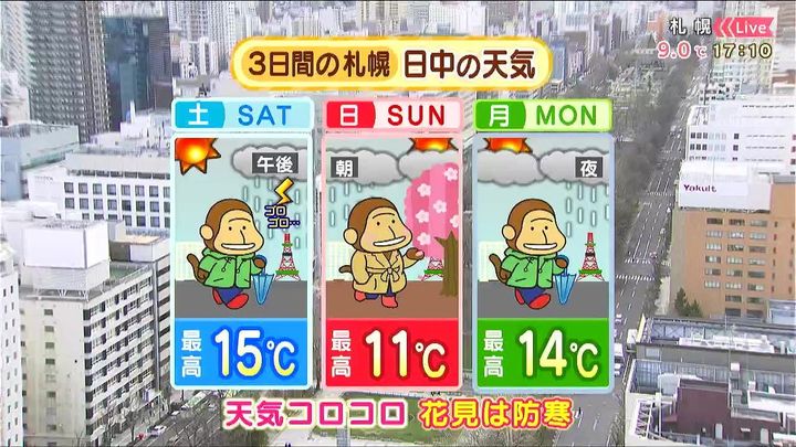 3日間の札幌です! 土日月の天気をもんすけでお伝えします!