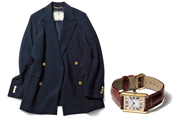 「たとえばTシャツにスエットぐらい気の抜けた組み合わせでも、ちょっとゆったりめなシルエットの紺ブレか、愛用しているカルティエのタンク、どちらかがあれば、それだけでベーシック、カジュアルなコーディネートも品よく。あれこれ考える余裕がないときにも頼れる存在」(樋口さん)