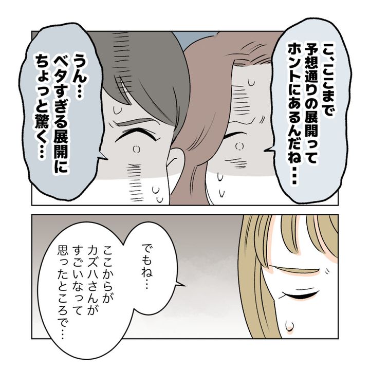 そんなやりとりが繰り広げられたと友達に話すナツさんが、「・・と、お義父さんは頑なにカズハさんを信じてたんだ・・」と言うと、「予想通りの展開・・」「ベタすぎる・・」そう呟く友達に、「でもね・・ここからがカズハさんがすごいなって思ったところで・・」ナツさんが静かに言いました。