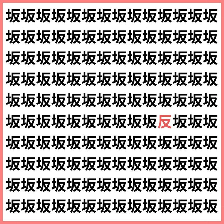 たくさんの「坂」の中に、1文字だけ違う漢字が混ざっています。