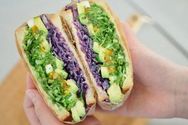軽く炒めた春キャベツをたっぷりとサンド。紫キャベツを加えると彩りも鮮やかに。ボリューム満点ですがお野菜が主なのでペロリと食べられてしまいます。キャベツはなるべく細く千切りにするのがポイントです。