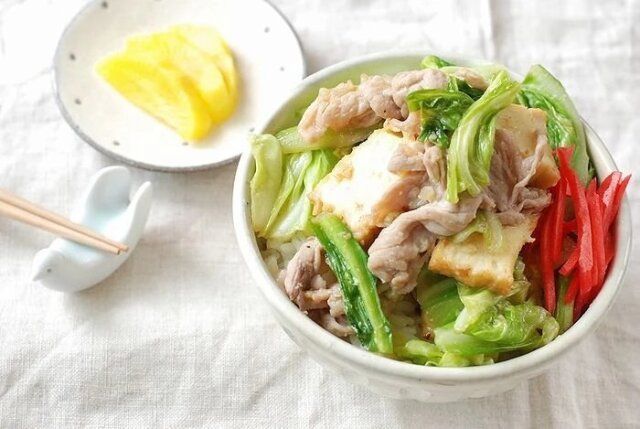 甘くてやわらかなキャベツにふわふわ厚揚げ、味噌ダレがからんだ豚肉が最高!白米が止まらない美味しさです!