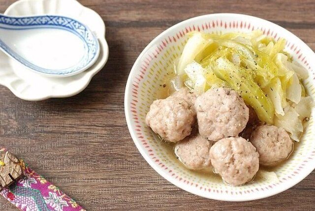 スープまでキャベツの旨みがぎゅっと詰まったふわふわ肉団子は、スープまで完食間違いなし!お好みで肉団子に粒マスタードをつけて食べるのもおすすめです。