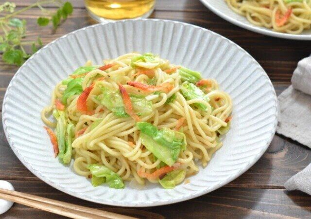 味付けは白だしのみ。桜エビと白だしのうま味が合わさって一発で味が決まるのでパパっと作れてお手軽です。焼きそばは蓋を開けたら強火で一気に炒めると水分がとんで、ベタつかずからりと焼きあがります。