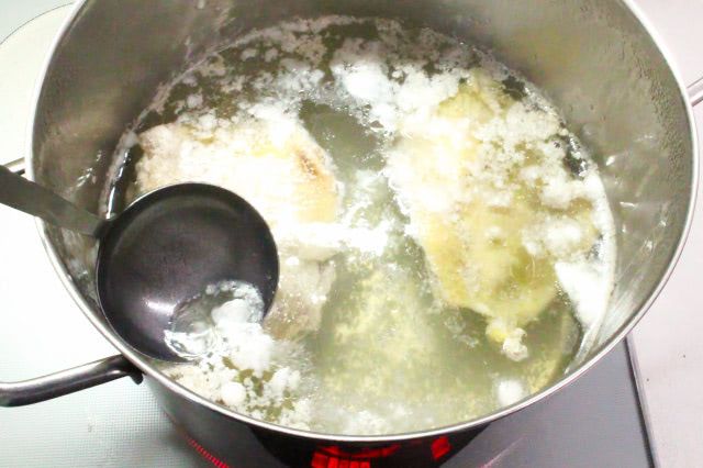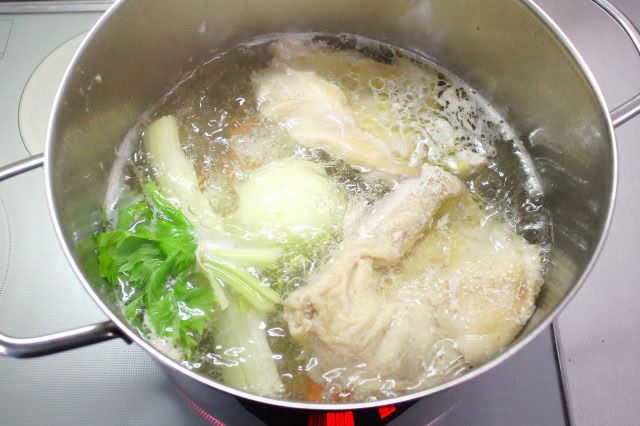 アクが出た状態で沸騰させ続けると、スープが濁ったような仕上がりになるそう。タイミングを逃さずにアクを取ってくださいね。