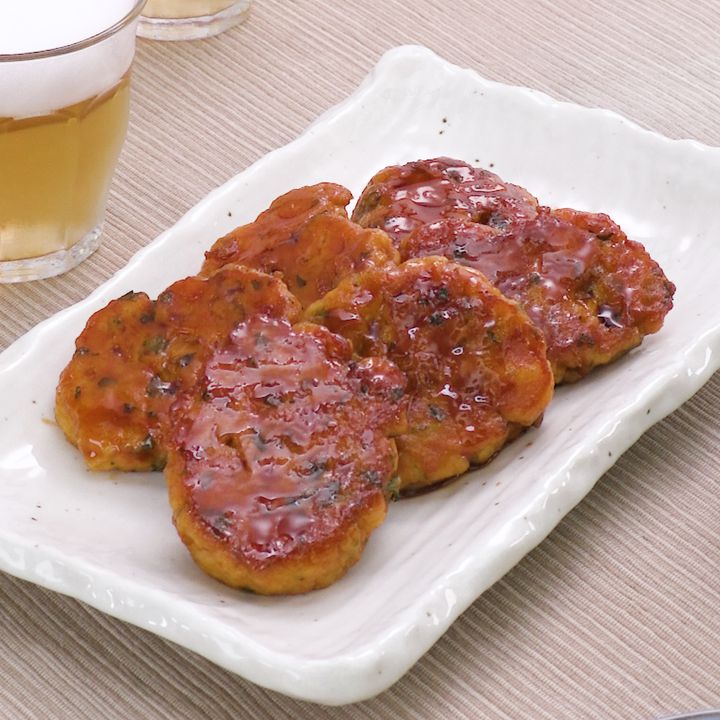 ツナとはんぺんでふんわりとしたつくねを作ります♪大葉を入れて香りもさわやか、甘辛いしょうゆのタレをからめていただきます。おつまみにも、副菜にもおすすめな一品!ポリ袋に入れてこねるだけで簡単に仕上がるのでぜひお試しください♪