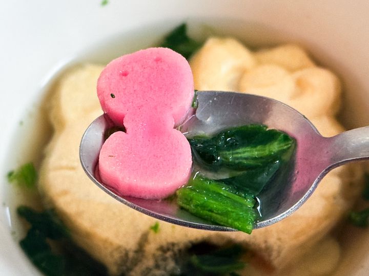 どちらにも、ほうれん草や彩り豊かなお麩(キティのリボン型やハート型、花型など)が入っており、見た目の華やかさと共に、加賀麩の魅力をしっかりと感じられます。