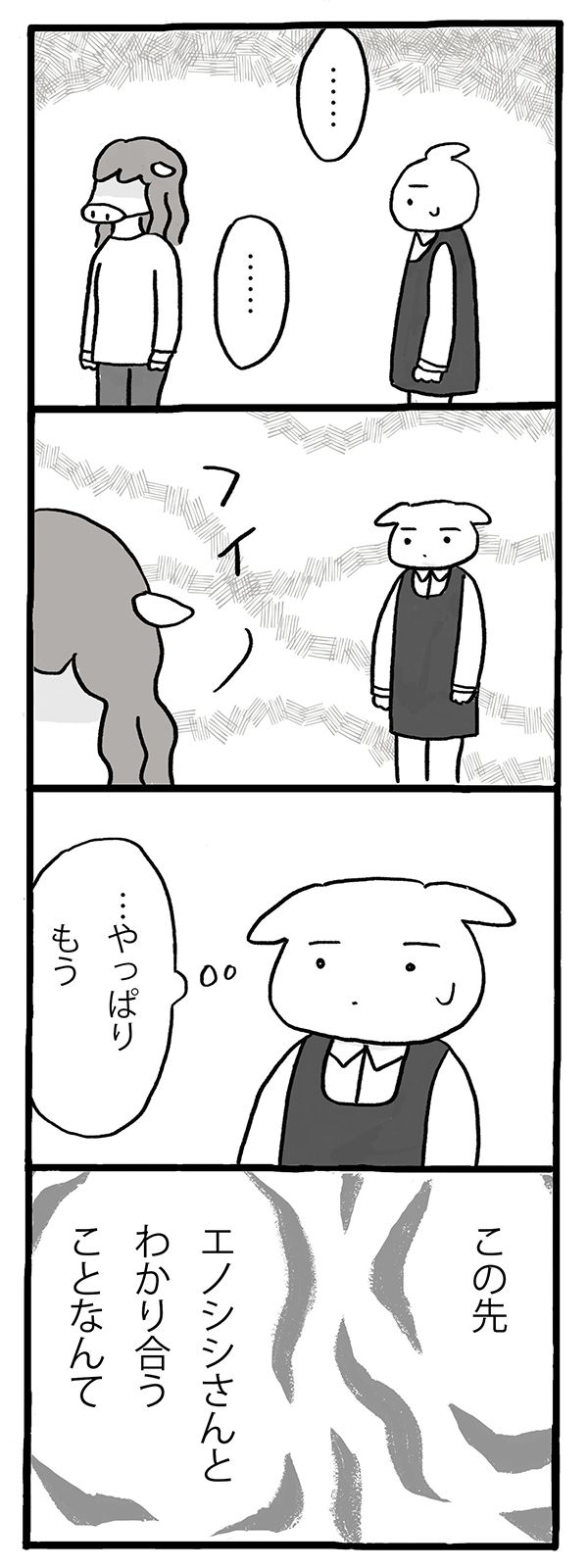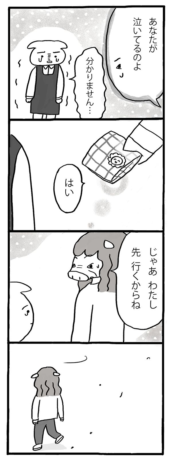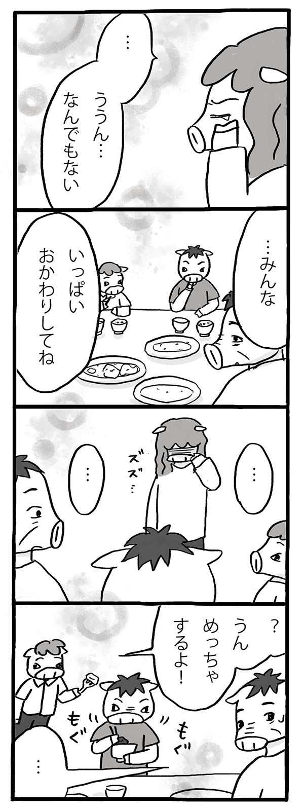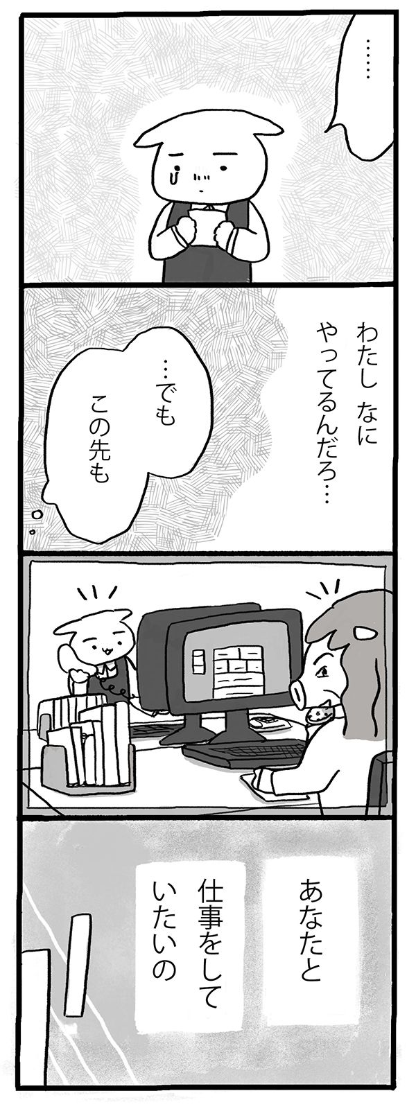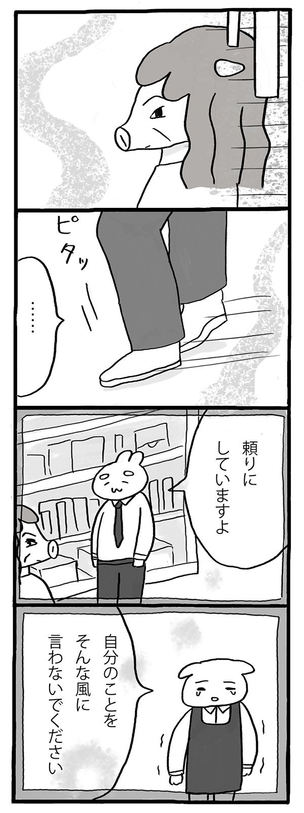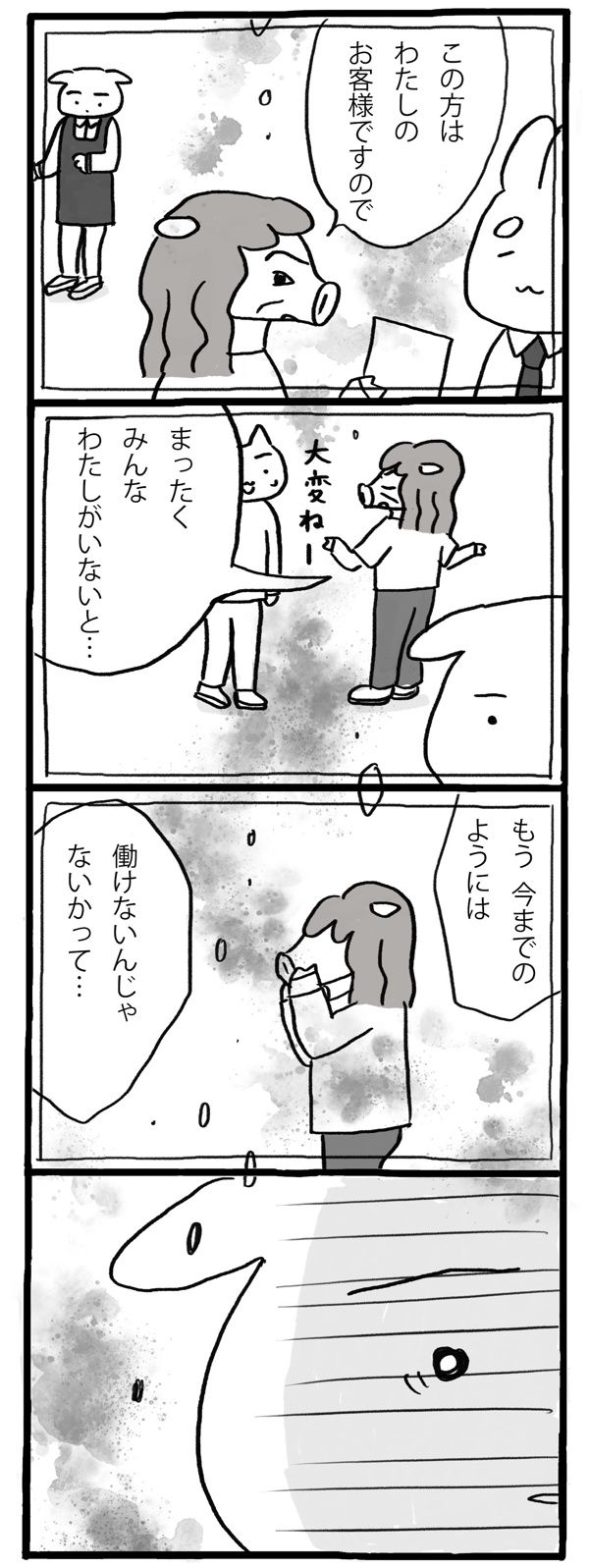 第5回 マママンガ賞出身のしのざきあゆみさんによる連載。仕事と家族の間で迷いながら、自分のやりたいことを探っていく、イヌミヤさんの物語。今回もパートの先輩、エノシシさんとのお話です。