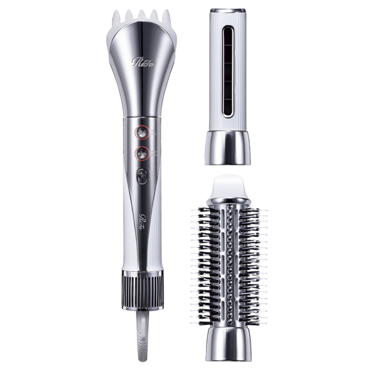 髪を乾かすだけでなく、根元の立ち上げや自然なカールといったスタイリング用アタッチメントが。リファビューテック リセッター ¥38,500(MTG)