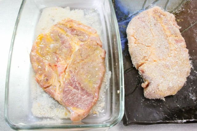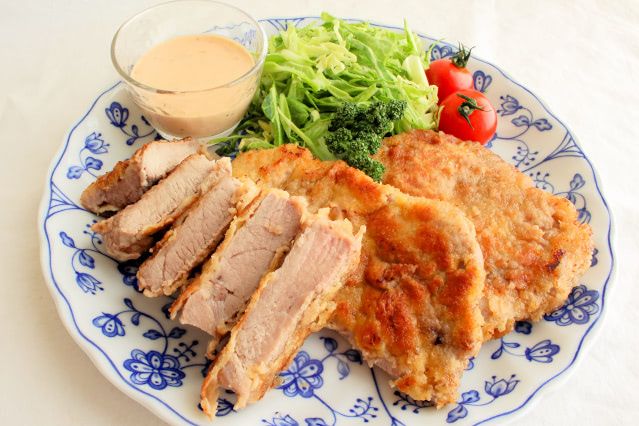 作り方は一般的なとんかつと同じでしたが、ドライパン粉を麺棒で叩いて粉状にするのがポイントでした。