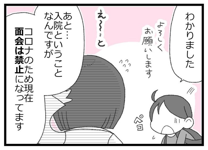 本作品はコロナウイルスが世間を賑わせていた時期に起こった出来事で、当時は入院の面会にも制限がかかっていました。そのため、医者の口から「次にお父さんに会えるのは、退院するときか亡くなったとき」といった、衝撃的な言葉を聞くことになるのでした。