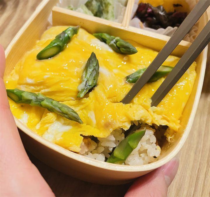 【春最強のお弁当】ふわとろ卵をドカンと乗せる「アスパラとベーコンの混ぜご飯」作ってみた!【農家直伝】