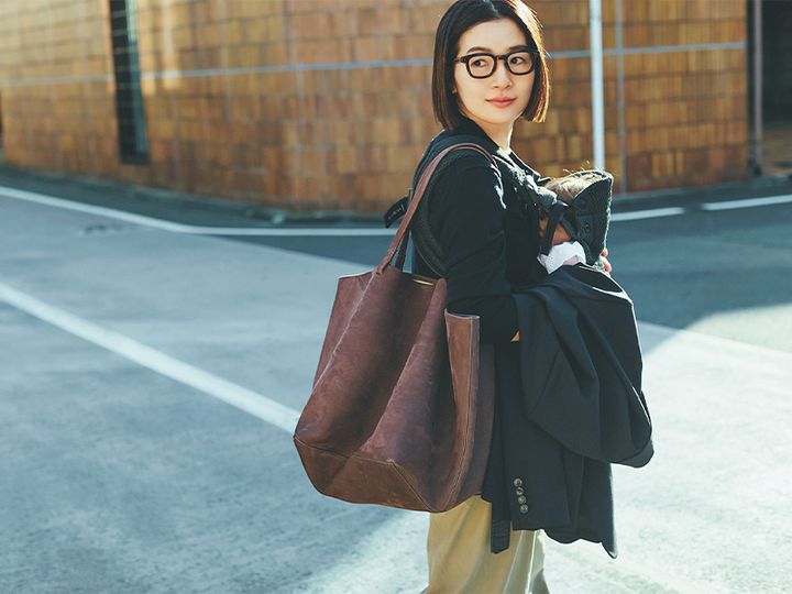 「仕事復帰を機に探していたのが、肩から掛けられ、ガバッと開けて荷物を出し入れできる大きめのトート。着こなしの要になるトートには妥協したくないから、ずっと気になっていたザ・ロウのXL Park Toteをお迎え。スエードの質感がいいアクセントになってくれます」