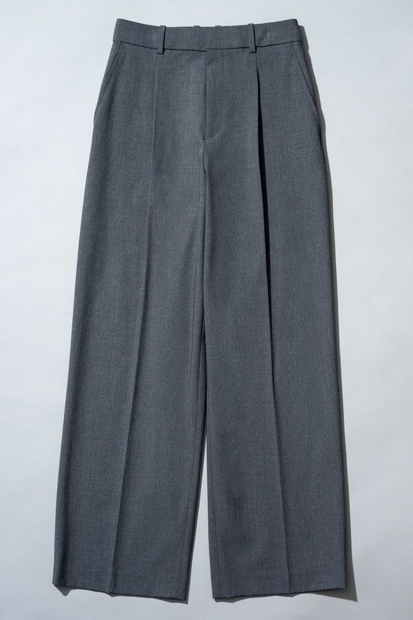 「ワイドパンツのマニッシュさで甘辛に。センタープレス入りなら、高見え&きちんと感も」