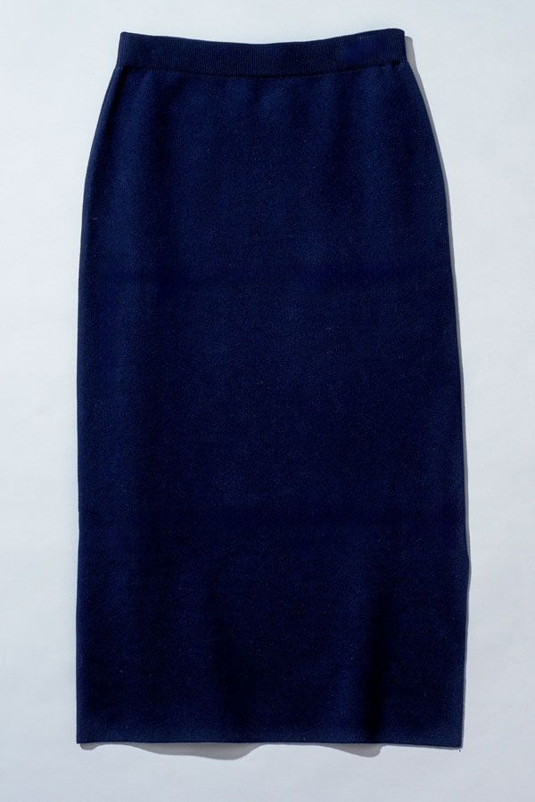 「ニットスカートは、ぴったりしすぎない適度なフィット感で。通勤ならブルー系で知的に」