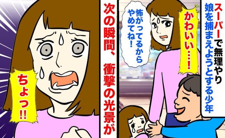 3. 「かわいい…」スーパーで無理やり娘を捕まえようとする少年!断ると姿を消し…次の瞬間、衝撃の光景が