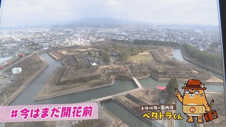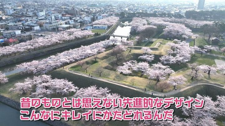 ヨーロッパ式の城郭をモチーフにした独特な形が特徴で、飛行機か五稜郭タワーに上らないとその全貌が見られないんだ。
