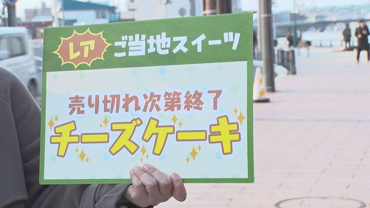 松尾アナ:「こちらです!売り切れ次第終了!チーズケーキ」