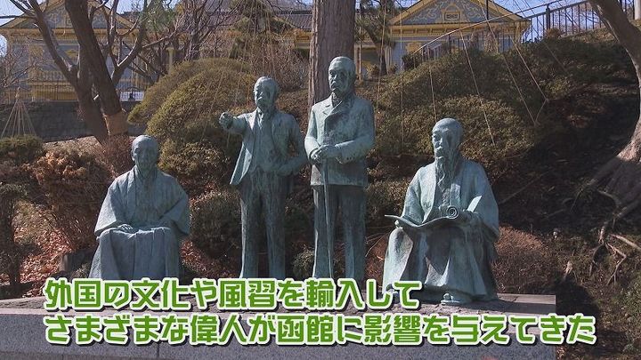 松尾アナ:「函館は江戸の末期に日本で初めて開港した貿易港です。そのため外国の文化や風習を輸入して、さまざまな偉人が函館の地に影響を与えてきました」