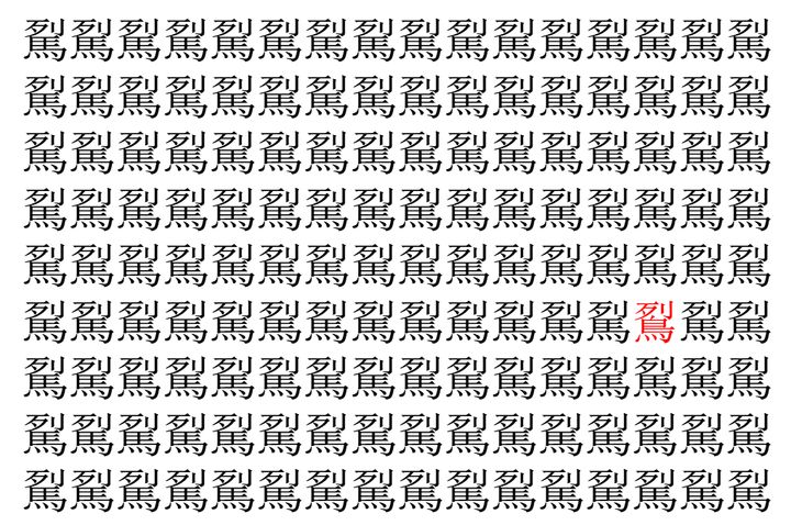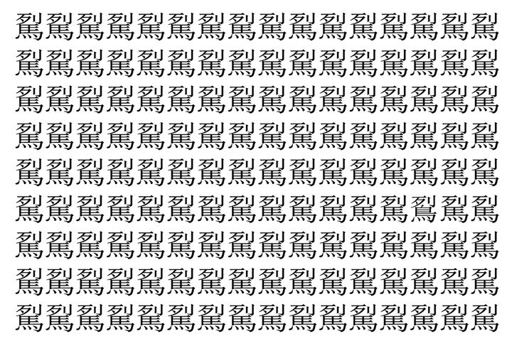 【脳トレ】「𩢾」の中に紛れて1つ違う文字がある!?あなたは何秒で探し出せるかな??【違う文字を探せ!】