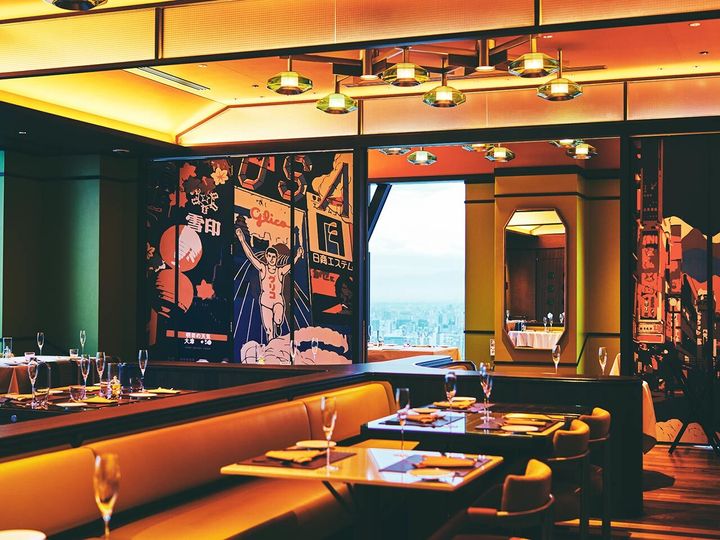 タイのデザイナーが想像する大阪が壁に描かれたステーキハウス『ウイスキーノヴァ』。スペイン製炭火窯「ジョスパー」で焼くステーキが絶品