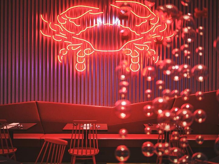 蟹をメインとする魚介料理の2階『エンバシー・オブ・クラブ』。チリクラブが異国的。