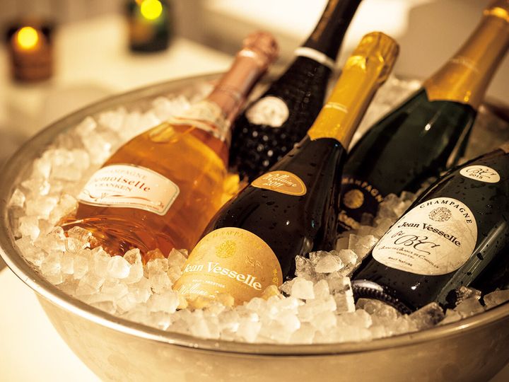 メゾンごとの特注ブランケットやボトルから作ったキャンドルを置くなど、細部へのこだわりも満載だ。おかげで泡の世界へ没入できる。
