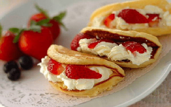 オムレット生地に、クリームやフルーツをサンドする贅沢デザート。レモン汁効果でフワフワになったオムレット生地は絶品です。焼き上がったら、熱いうちに折りたたみ、ラップで包んで冷ましましょう。こうすることで、生地が割れずにきれいに仕上がりますよ。