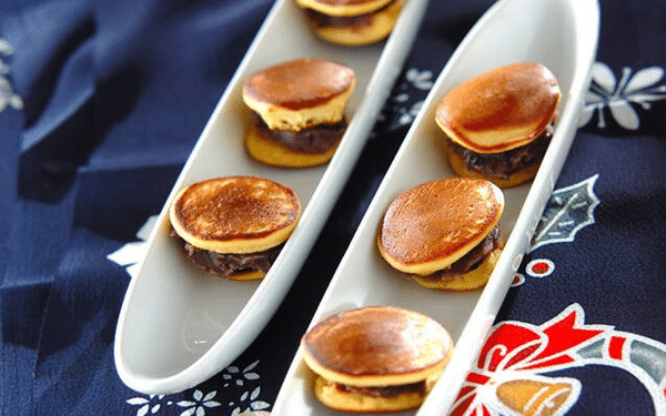 一口サイズのかわいいどら焼き。生地にハチミツを入れることで、しっとりとした仕上がりに。ゆで小豆と一緒に、栗の甘露煮をはさむアレンジもおすすめです。このどら焼きなら、初心者でも失敗せずに作れますよ。