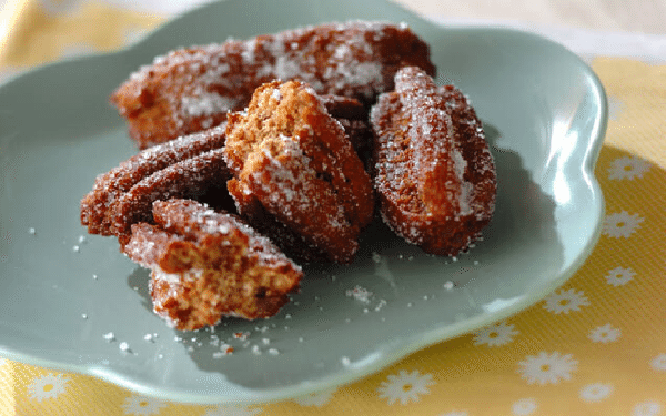 有名テーマパークの定番「チュロス」をココア味にアレンジ。材料を混ぜて生地を作り、クッキングペーパーの上に絞り出したら、ペーパーごと揚げます。温かいうちにグラニュー糖をまぶしたら完成です。カリッと食感がくせになりますよ。
