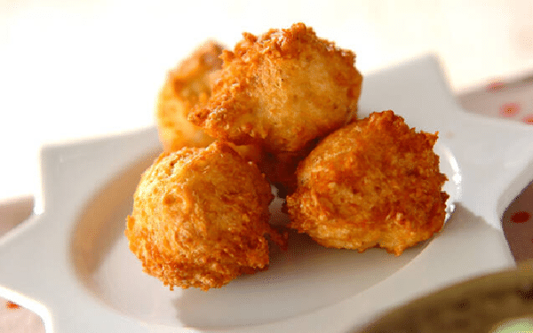 噛んだ瞬間にゴマの香りが口いっぱいに広がる、サクッと軽やかな食感のドーナツです。材料を混ぜたら、スプーンで生地を入れて揚げればOK。型抜きは不要です。揚げると一回り大きくなるので、生地を落とす量でサイズを調整しましょう。
