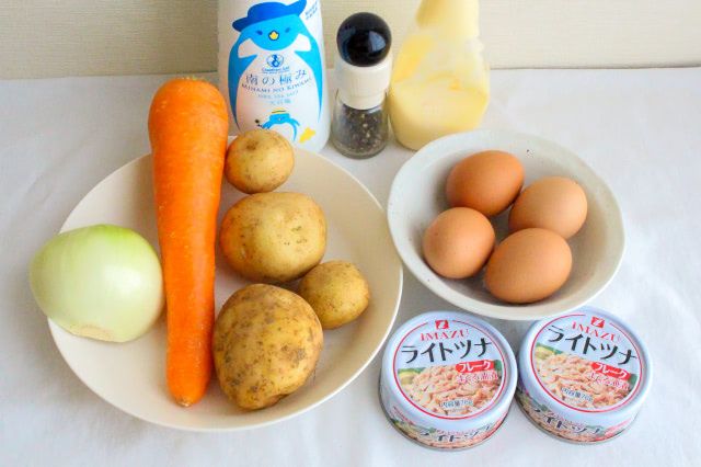 じゃがいも、にんじん、玉ねぎ、ツナ缶、卵、マヨネーズ、塩、こしょう。どの食材も日本でおなじみ&わが家に常備しているものばかり。ロシアの家庭のおもてなし料理、挑戦してみます♪